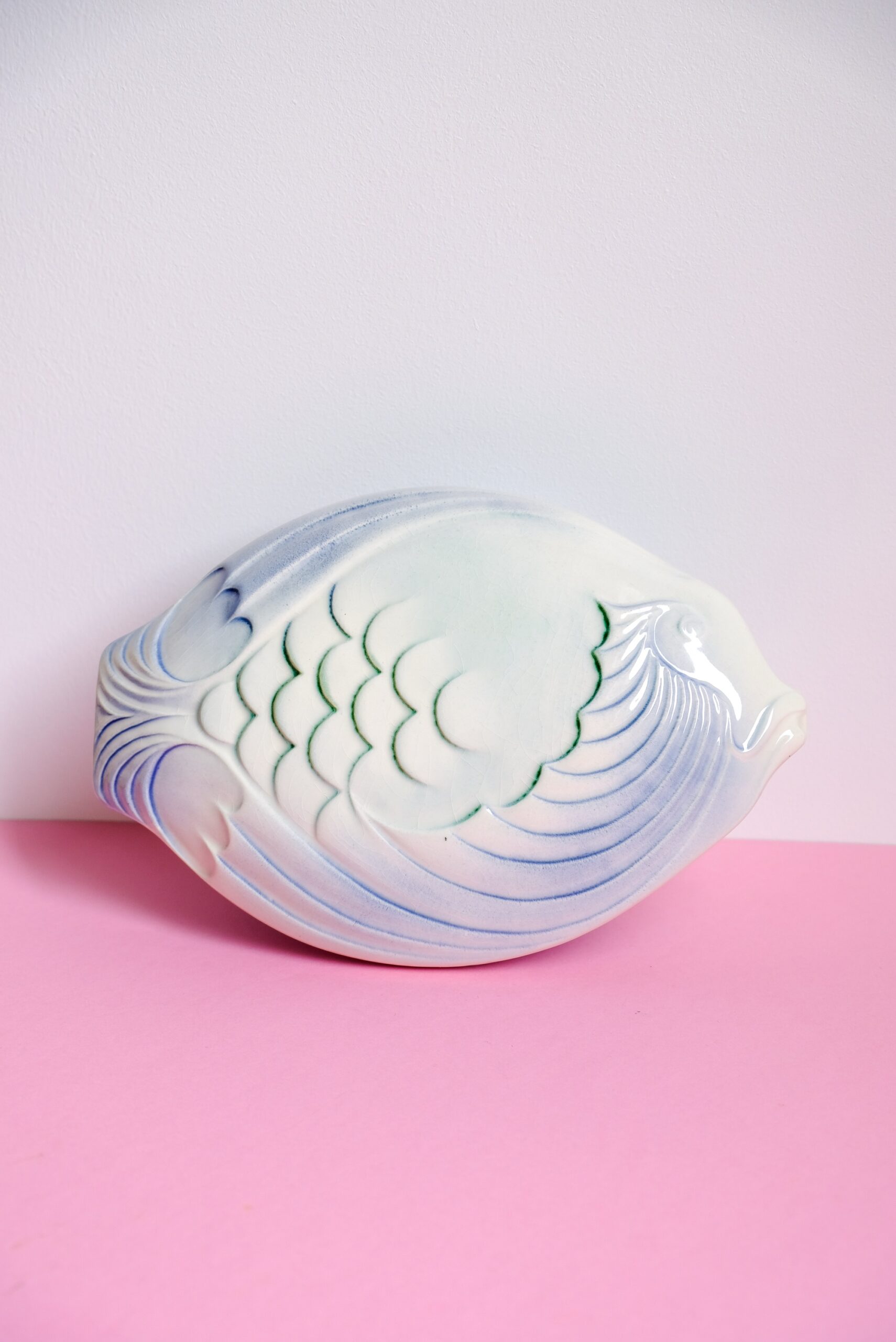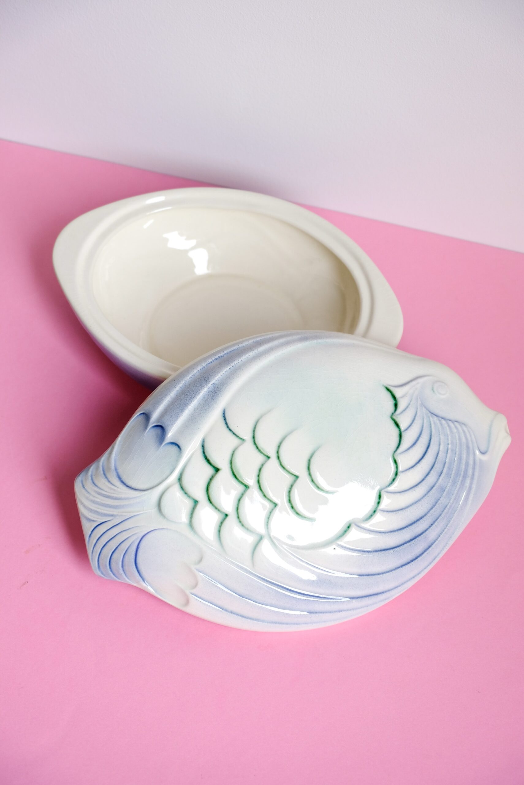• Très belle boîte soupière en forme de poisson de la manufacture Digoin Sarreguemines. Elle est en faïence émaillée.