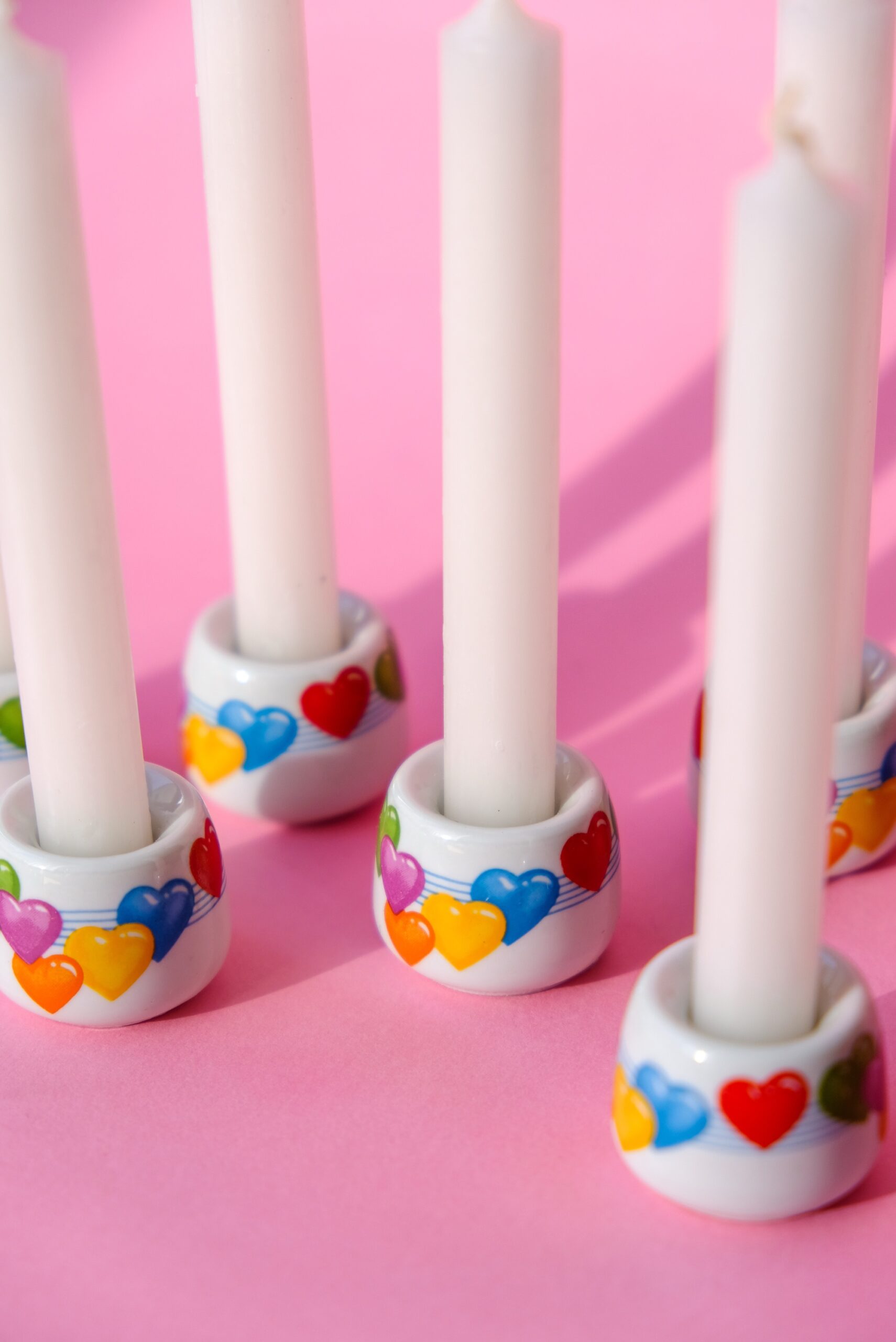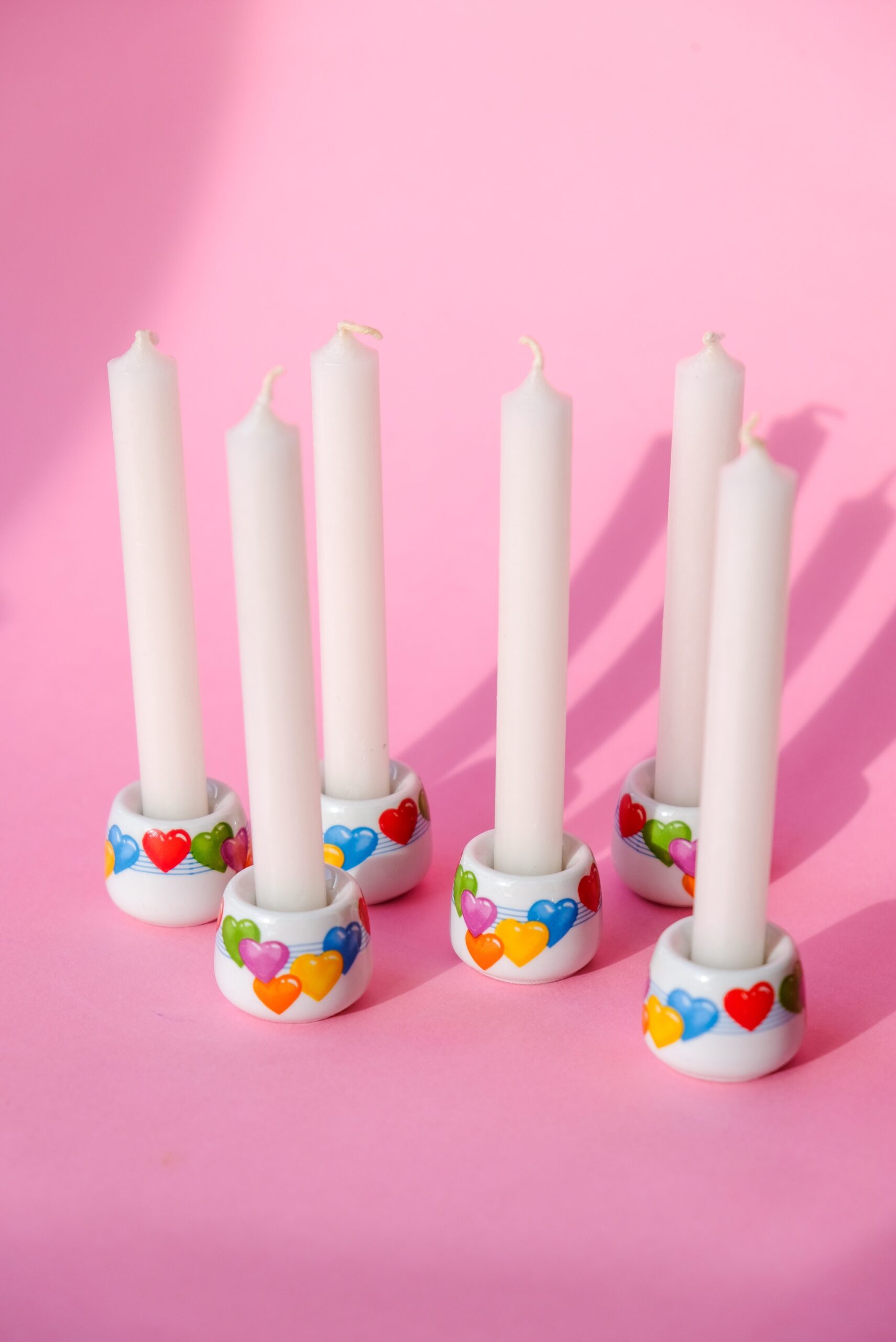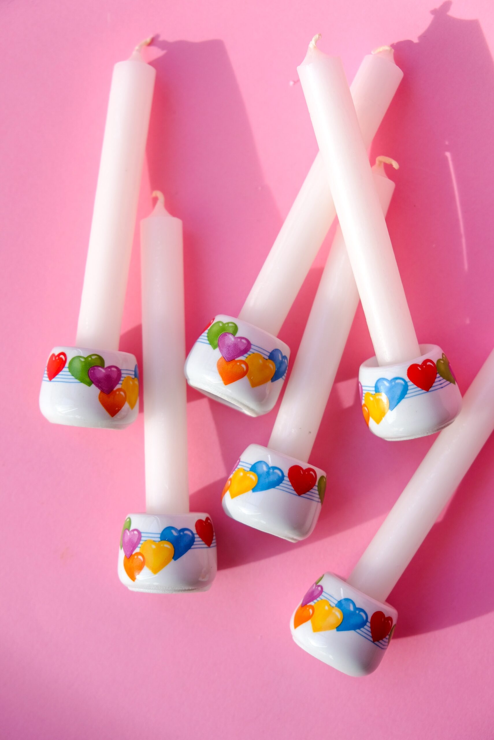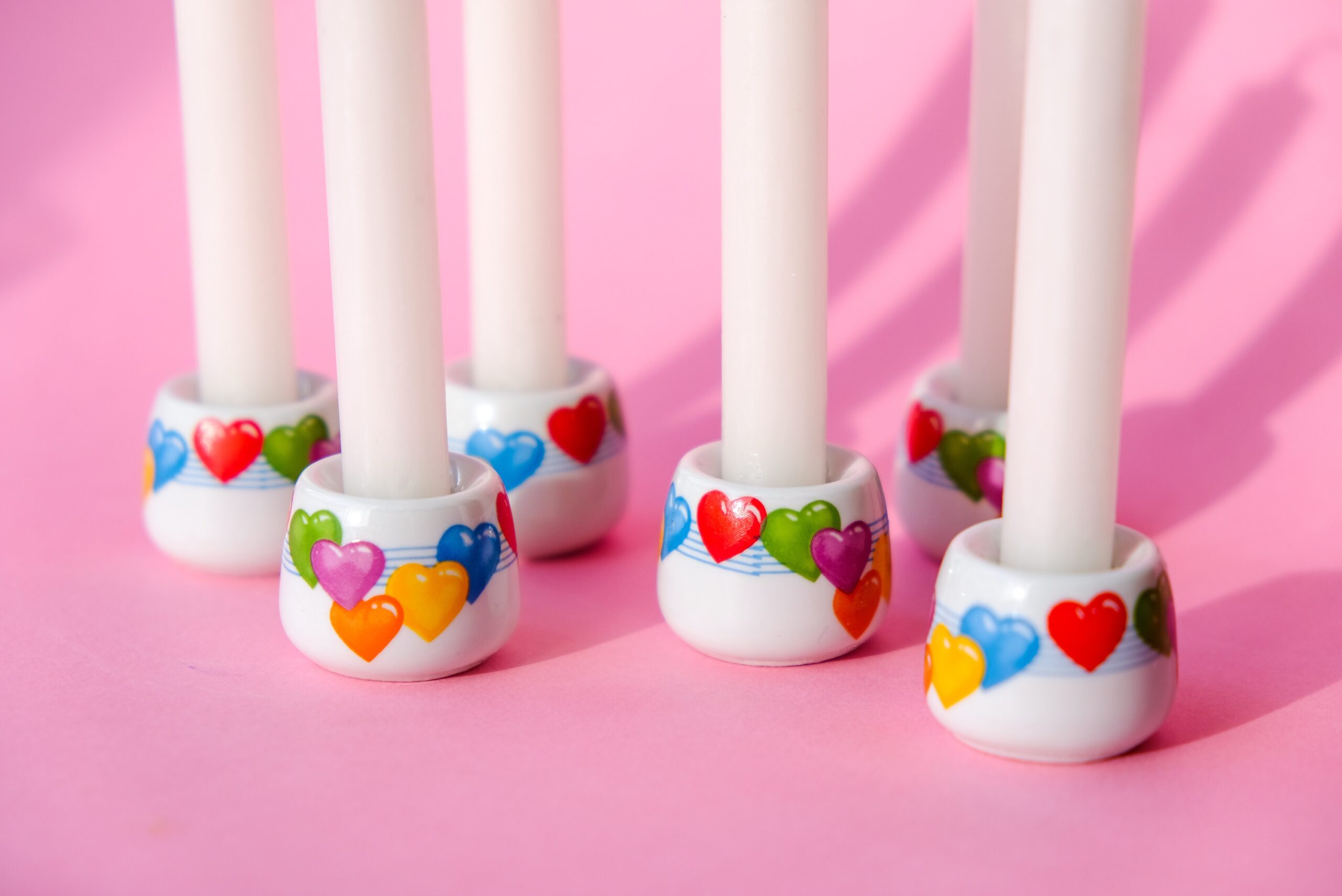 • lot de 6 mini bougeoirs au motif cœurs multicolores en porcelaine made in Germany